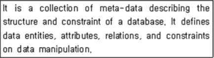 - 데이터베이스의 구조와 제약조건에 관한 기술을 하는 메타데이터의 모음이다.